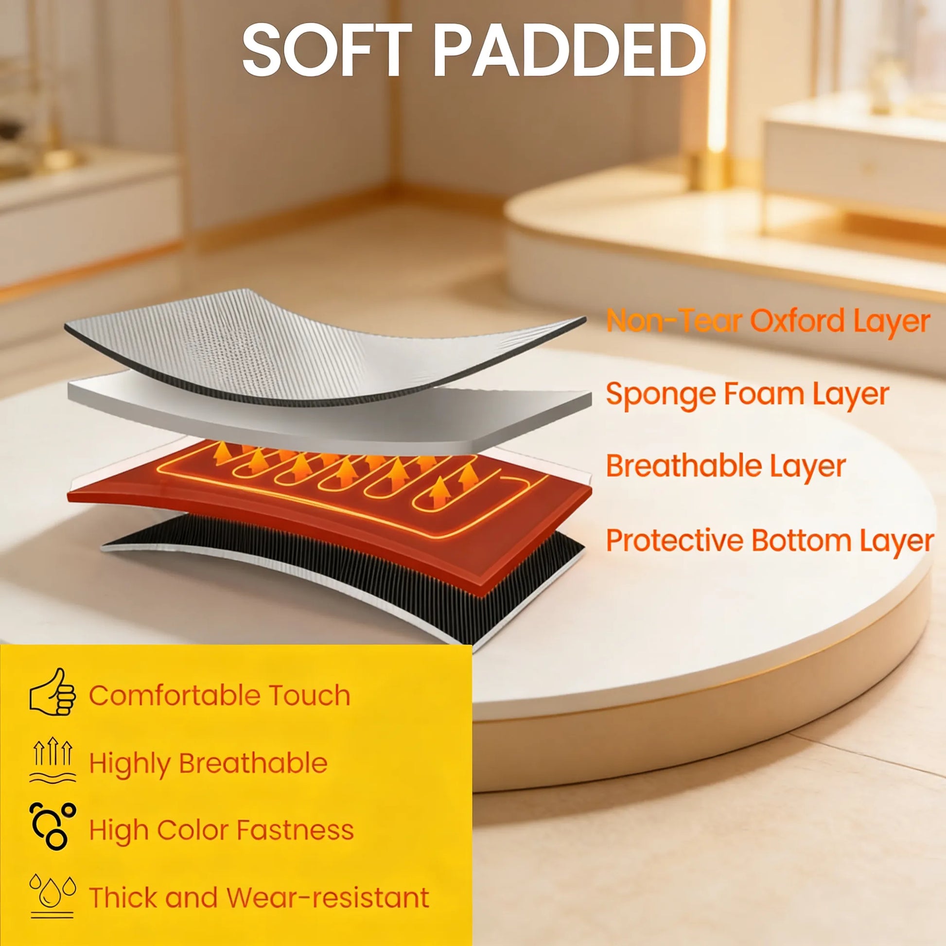 Premium Comfort Materials – Features a thick sponge cushion paired with breathable 600D Oxford fabric for lasting softness and durability.